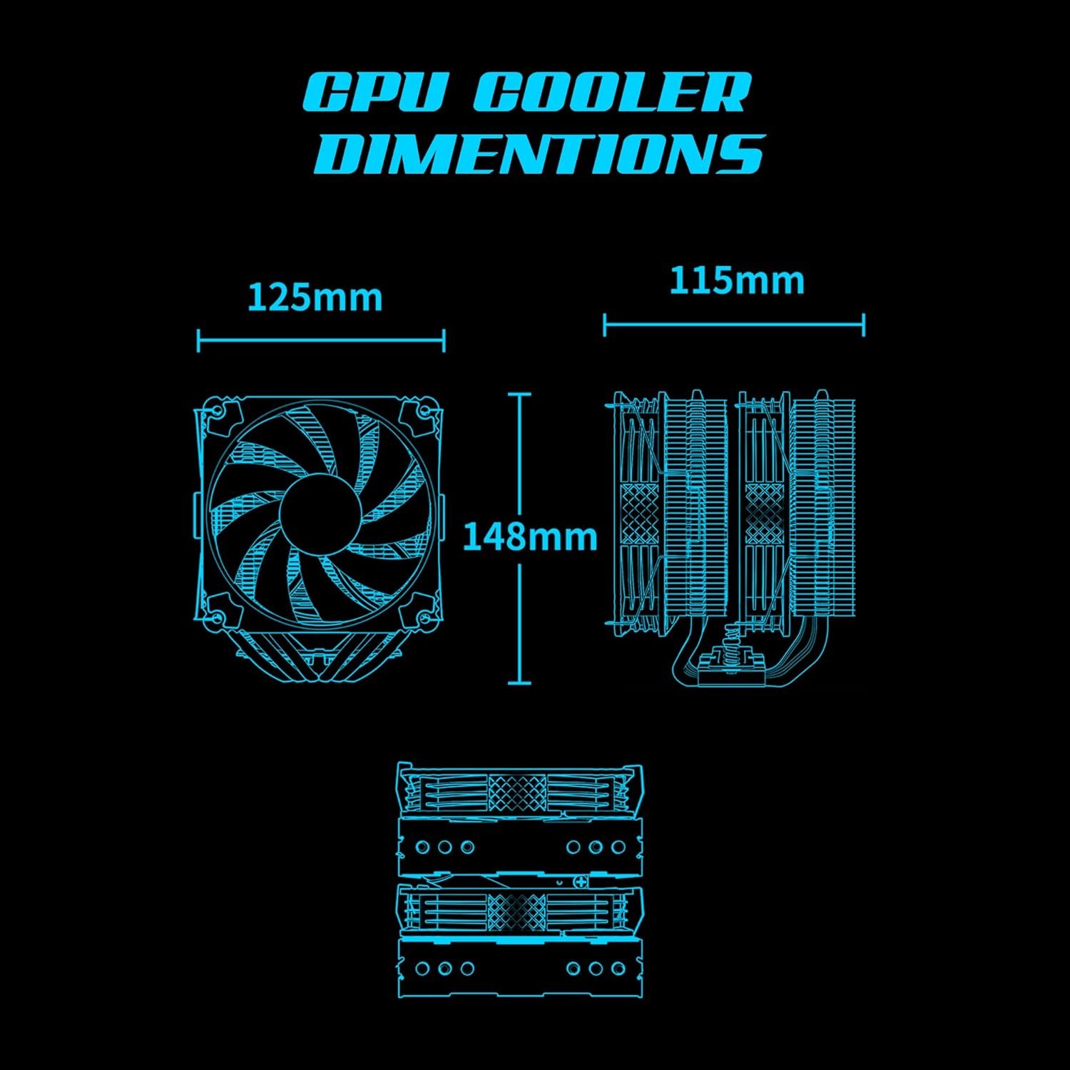• Heat Pipes: 4 × Direct Contact Copper Heat Pipes