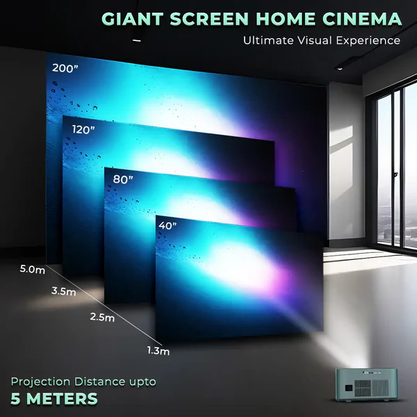 Bring the theatre experience home with this advanced Full HD & 4K LED Projector. Equipped with 9000 lumens brightness, auto focus, and dual-band Wi-Fi, it delivers sharp, vibrant visuals and seamless streaming. With Bluetooth 5.0, dual 5W speakers, and a 50,000-hour LED lifespan, this projector offers exceptional performance and convenience for movies, gaming, and presentations.